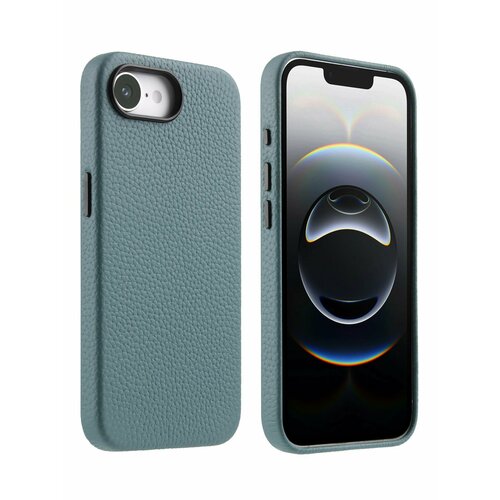 Кожаный чехол накладка с Magsafe Regal SC для iPhone 16E, серо-голубой