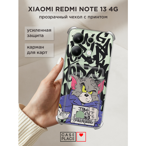 Чехол на Xiaomi Redmi Note 13 4G (Global) (Сяоми Редми Нот 13 4G) с картой и принтом Том и Джерри