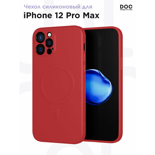 Чехол DesignOnCase "красный", для iPhone 12 Pro Max, противоударный, силикон, soft-touch, с Магнитом