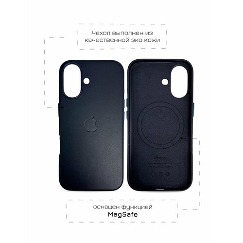 Чехол для iPhone 16, MagSafe, Soft touch, кожаный, цвет темно-синий