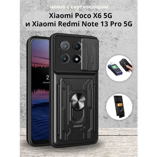 Чехол противоударный с картхолдером на Xiaomi Poco X6 5G и Xiaomi Redmi Note 13 Pro 5G (Черный)