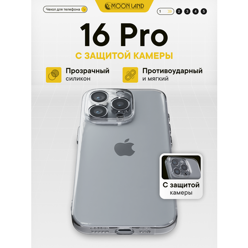 Чехол Moon Land, для iPhone 16 Pro, силикон, прозрачный, защита камеры