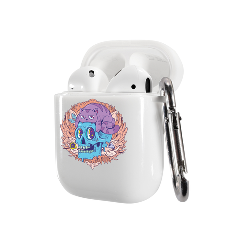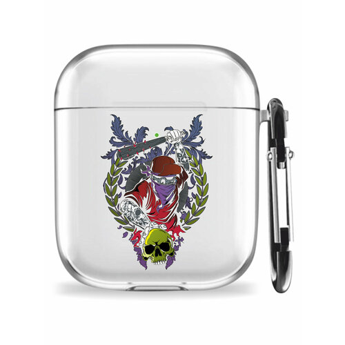 Силиконовый чехол Mcover для беспроводных наушников AirPods 1/2, с карабином, глянцевый, Череп с тату
