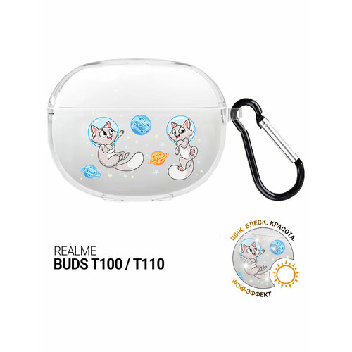 Чехол на Realme Buds T100 / T110 с принтом "CosmoCats" прозрачный