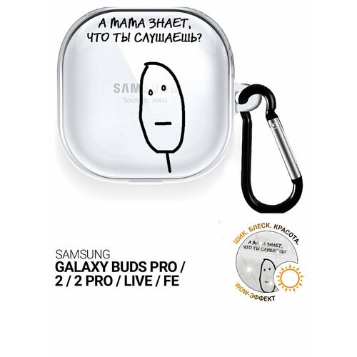 Чехол на Samsung Galaxy Buds Pro / 2 / 2 Pro / Live / FE с принтом "А мама знает?" прозрачный