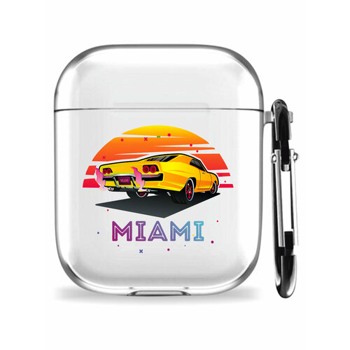 Силиконовый чехол Mcover для беспроводных наушников AirPods 1/2, с карабином, глянцевый, Miami car