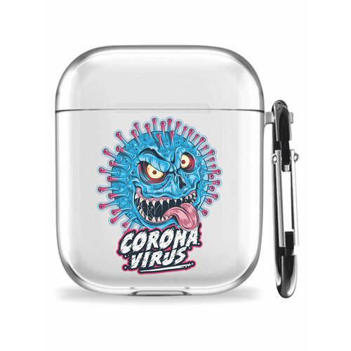Силиконовый чехол Mcover для беспроводных наушников AirPods 1/2, с карабином, глянцевый, Coronavirus