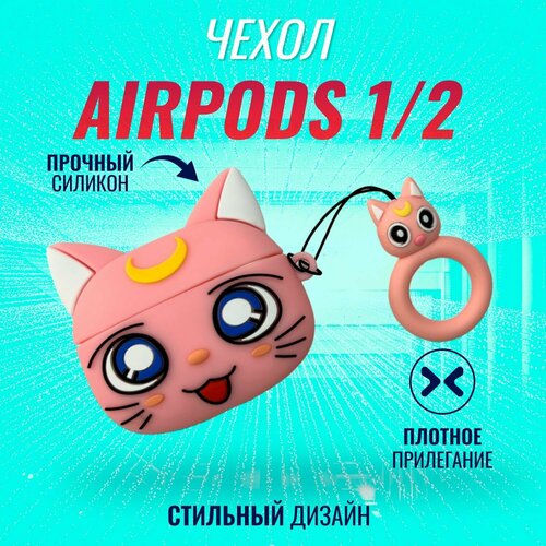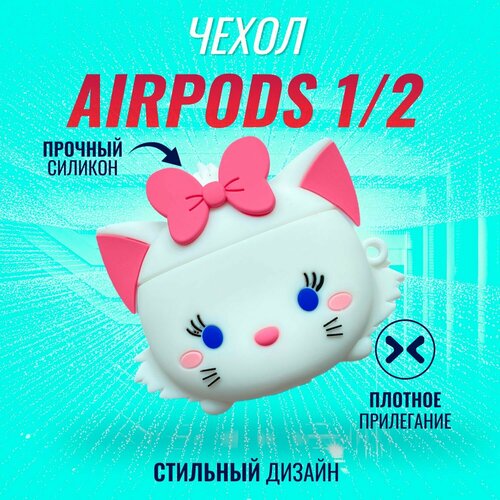 Чехол для наушников AirPods 1 и 2 / Аирподс 1 и 2 версии (Кошка розовая)