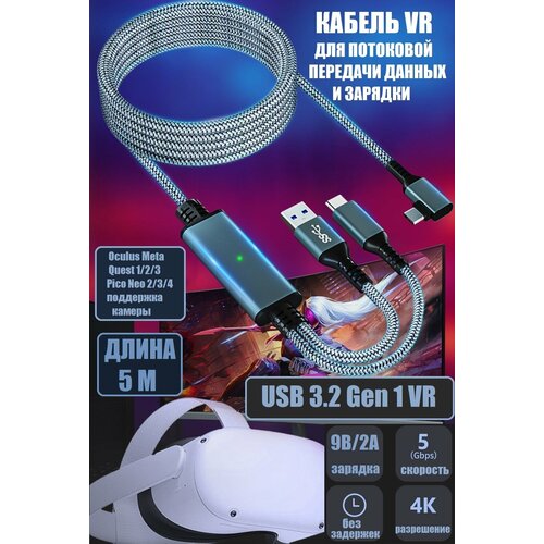 VR кабель 5 м USB 3.2 Gen 1 зарядка и передачи данных для Oculus Link Quest 2/3 Pico Neo 2/3/4