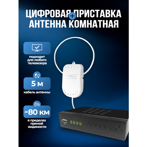 Антенна для цифрового тв комнатная 5в. 5м. + приставка для телевизора