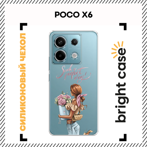 Чехол на Xiaomi Poco X6 / Поко Х6 с принтом Девушка с букетом, прозрачный