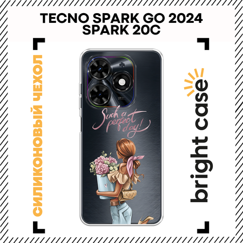 Чехол на Tecno Spark Go 2024/Spark 20C / Текно Спарк Го 2024/Спарк 20C с принтом Девушка с букетом, прозрачный