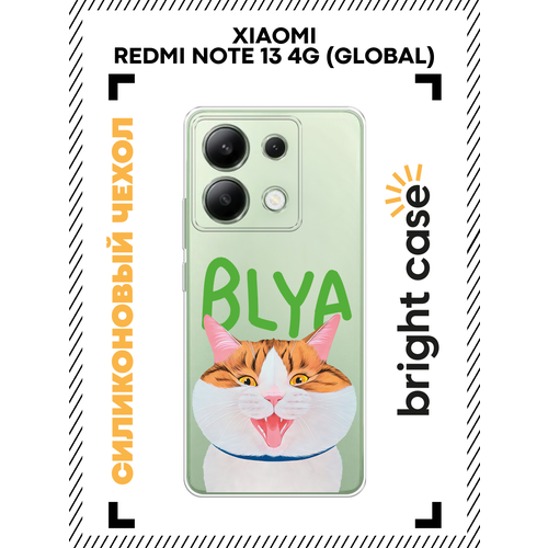 Чехол на Xiaomi Redmi Note 13 4G (Global) / Сяоми Редми Нот 13 4G с принтом Белый котик с надписью, прозрачный