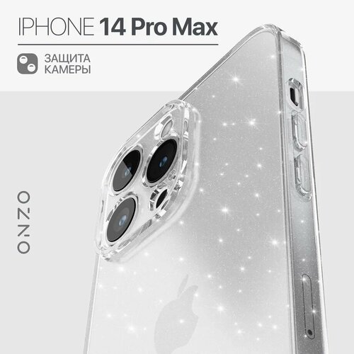 Силиконовый чехол на Айфон 14 Про Макс / iPhone 14 Pro Max, прозрачный с блестками