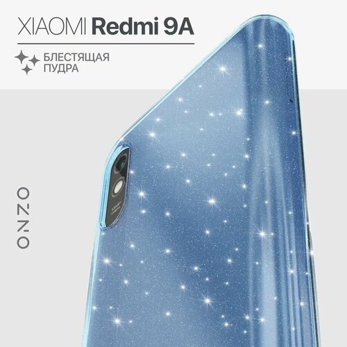 Блестящий чехол на Xiaomi Redmi 9A / Сяоми Редми 9а бампер тонкий, голубой прозрачный