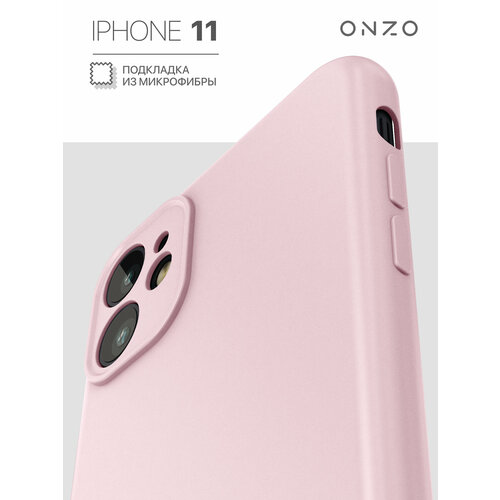 Защитный чехол на iPhone 11 / Айфон 11 бампер с микрофиброй, розовый