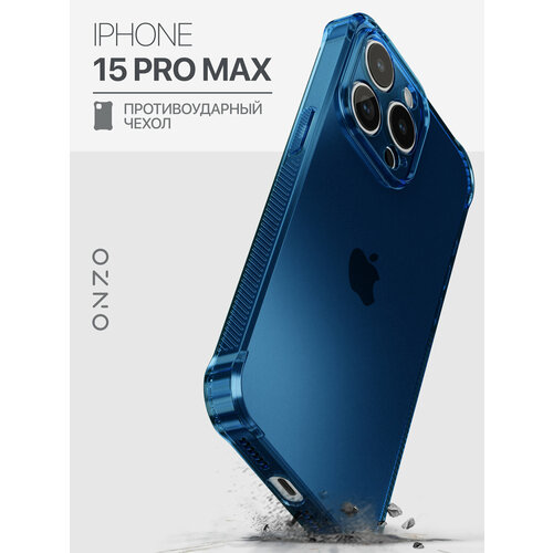 Противоударный бампер для iPhone 15 Pro Max / Чехол на Айфон 15 Про Макс с рельефными гранями, синий прозрачный