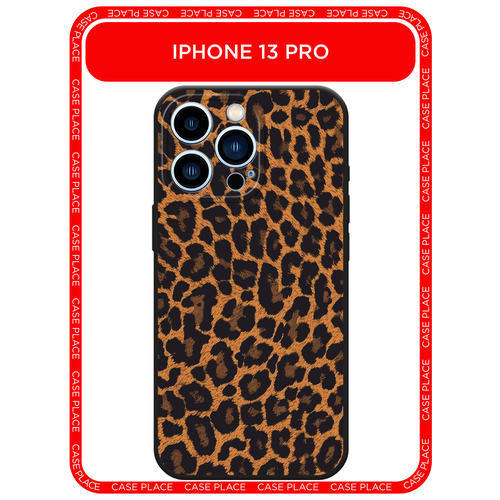 Черный матовый чехол на Apple iPhone 13 Pro / Айфон 13 Про с принтом Шкура леопарда