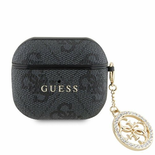 Guess для Airpods 3 чехол кожаный с принтом 4G с метал лого и подвеской Diamond charm, черный