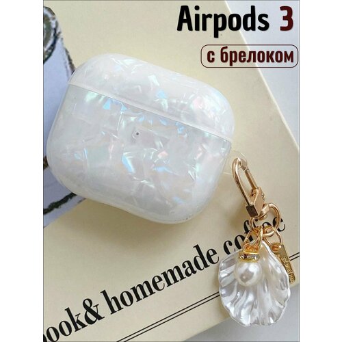 Чехол для наушников Airpods 3 ( на Аирпордс 3 ) силиконовый с брелоком Ракушка, жемчужный