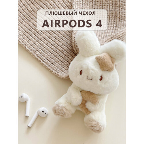 Чехол для наушников AirPods 4 (2024) плюшевый "Зайка" с цепочкой, белый