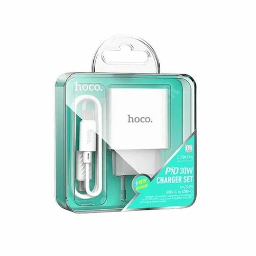 Сетевое зарядное устройство Hoco C76A Pro 30W с кабелем Type-C to Type-C, белый