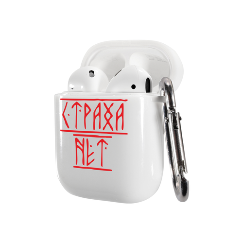 Силиконовый чехол Mcover для беспроводных наушников AirPods 1/2, с карабином, глянцевый, Страха нет
