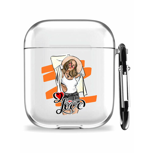 Силиконовый чехол Mcover для беспроводных наушников AirPods 1/2, с карабином, глянцевый, Девушка в шляпке