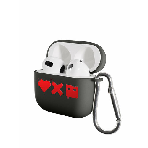 Силиконовый чехол Mcover для беспроводных наушников AirPods 3, с карабином, матовый, Лого Love, death, robots