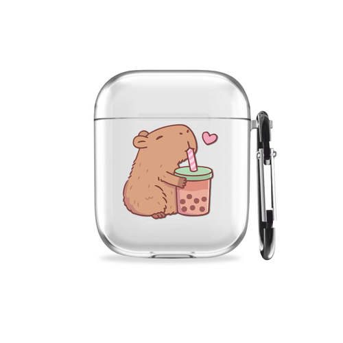 Силиконовый чехол Mcover для беспроводных наушников AirPods 1/2, с карабином, глянцевый, Капибара