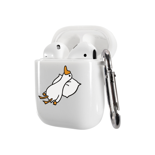 Силиконовый чехол Mcover для беспроводных наушников AirPods 1/2, с карабином, глянцевый, Гусь