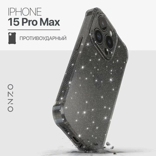 Чехол на Айфон 15 Про Макс противоударный / Бампер для iPhone 15 Pro Max черный прозрачный с блестками