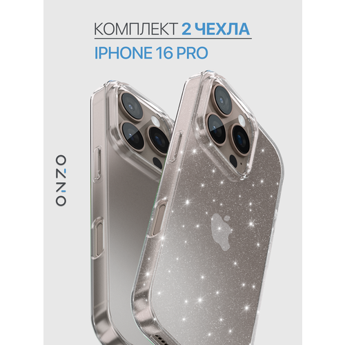 Комплект чехлов ONZO для Apple iPhone 16: прозрачный, серебряные блестки
