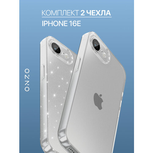 Комплект чехлов ONZO для Apple iPhone 16 e прозрачный, серебряные блестки