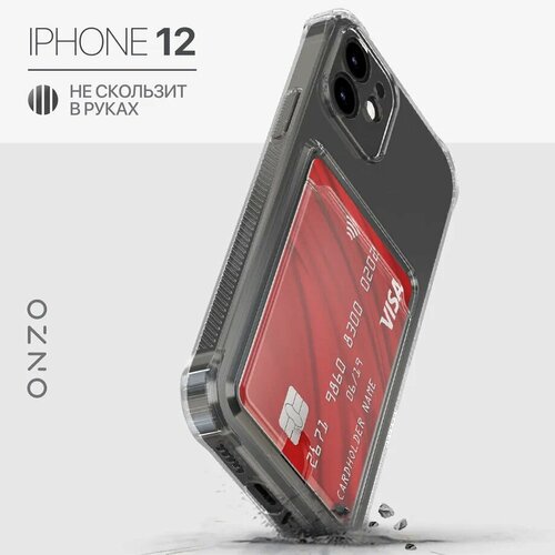Чехол картхолдер на iPhone 12 / Айфон 12 бампер с усиленными углами, прозрачный