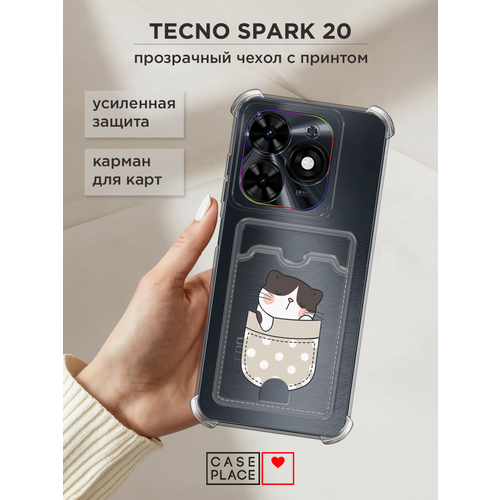 Чехол на Tecno Spark 20/Infinix HOT 40i (Текно Спарк 20/Инфиникс Хот 40i) с картой и принтом Котик спит в кармане