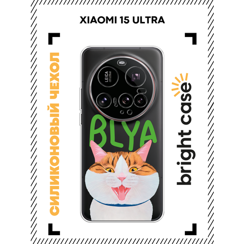Чехол на Xiaomi 15 Ultra / Сяоми 15 Ультра с принтом Белый котик с надписью, прозрачный