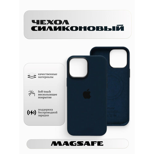 Чехол силиконовый для iPhone 15 Pro, с поддержкой беспроводной зарядки, Soft touch, цвет темно - синий