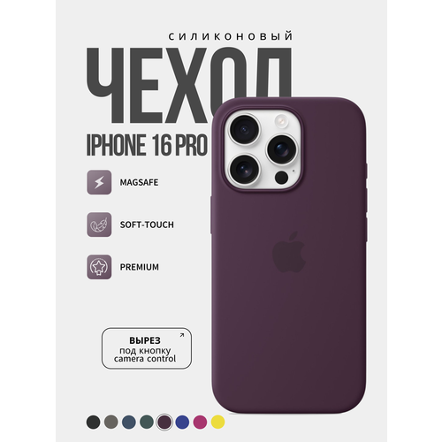 Чехол силиконовый для iPhone 16 Pro, с поддержкой беспроводной зарядки, Soft touch, цвет бордовый