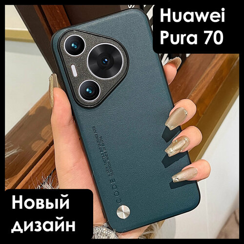 Чехол экокожа на Huawei Pura 70 (Хуавей Пура 70) премиум, цвет сине-зеленый