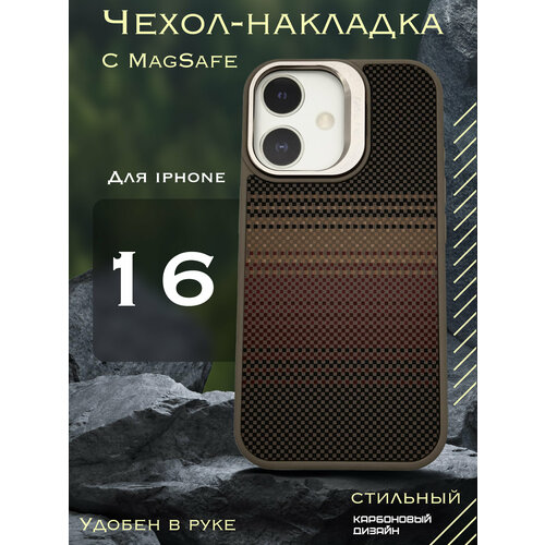 Чехол-накладка на Айфон 16 c подставкой, ударопрочный, карбоновый, с поддержкой беспроводной зарядки MagSafe