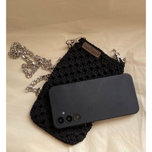 Сумка кросс-боди, чехол для телефона, фактура вязаная с цепочкой, цвет Черный принц 19*12 , ручная работа