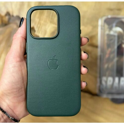 Кожаный чехол-накладка Leather Case MagSafe / Для iPhone 16 Pro Max / Green