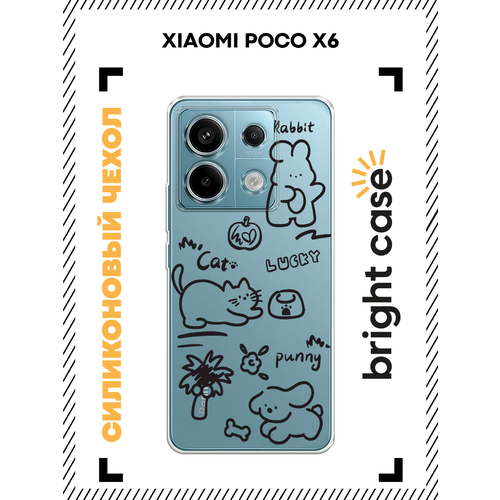 Чехол на Xiaomi Poco X6 / Поко Х6 с принтом Милые зверята, прозрачный
