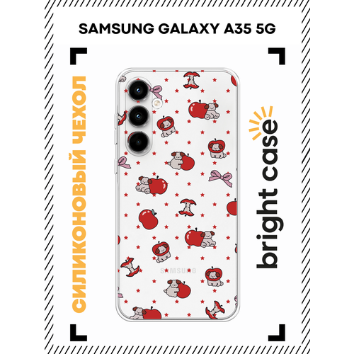Чехол на Samsung Galaxy A35 5G / Самсунг А35 5G с принтом Собачки и яблоки, прозрачный