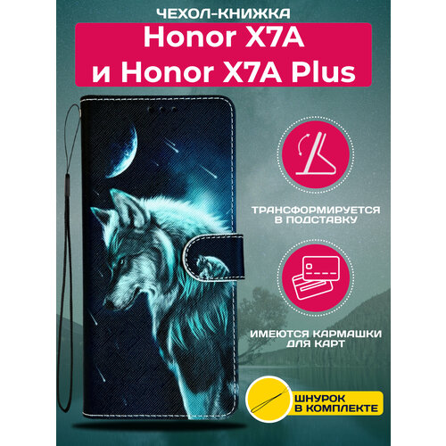 Чехол книжка wallet case на Honor X7A и Honor X7A Plus / Хонор Х7А и Хонор Х7А + с рисунком (Волк)