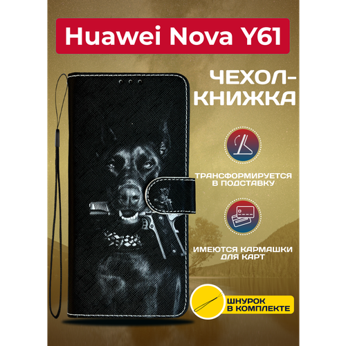 Чехол книжка wallet case на Huawei Nova Y61 / Хуавей Нова У61 с рисунком (Доберман)