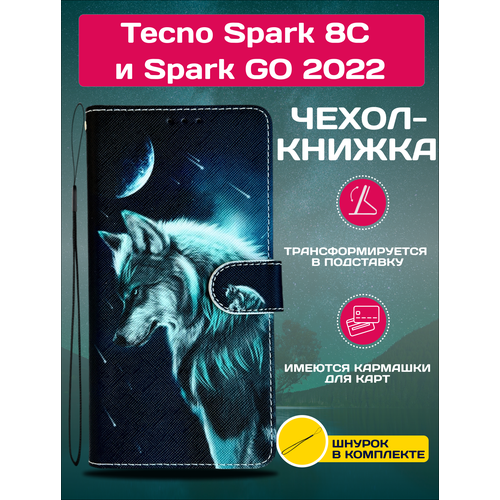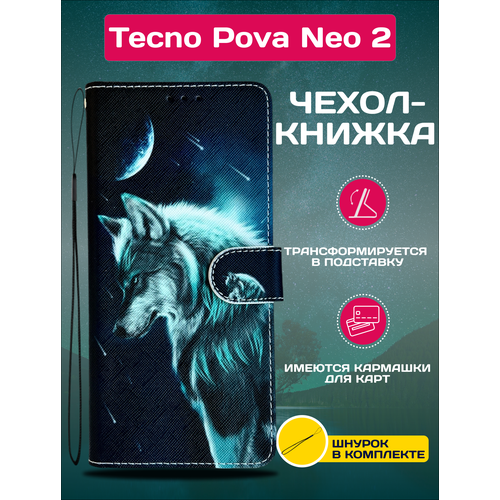 Чехол книжка wallet case на Tecno Pova Neo 2 / Техно Пова Нео 2 с рисунком (Волк)