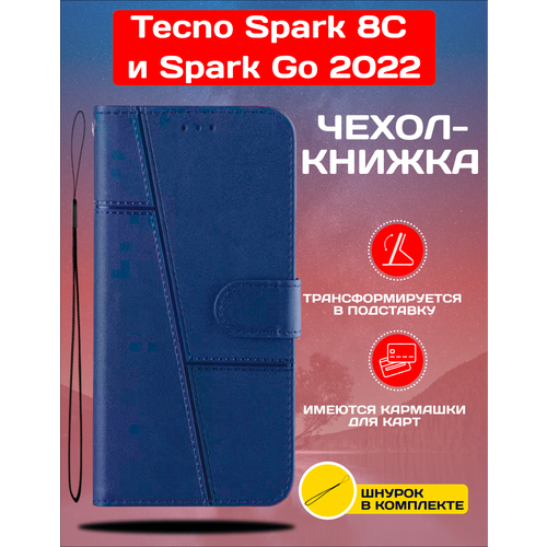 Чехол книжка wallet case на Tecno Spark 8C и Spark GO 2022 / Техно Спарк 8С и Спарк ГО 2022 (Синяя)