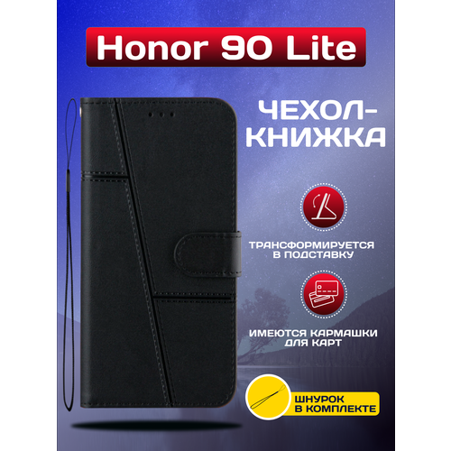 Чехол книжка wallet case на Honor 90 Lite / Хонор 90 Лайт (Черная)